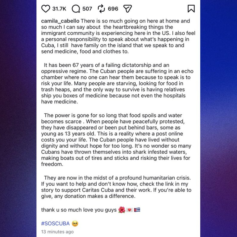 Camila Cabello posted about Cuba’s suffering. Starvation. Trash heaps. Hospitals without medicine. Fear of speaking out.