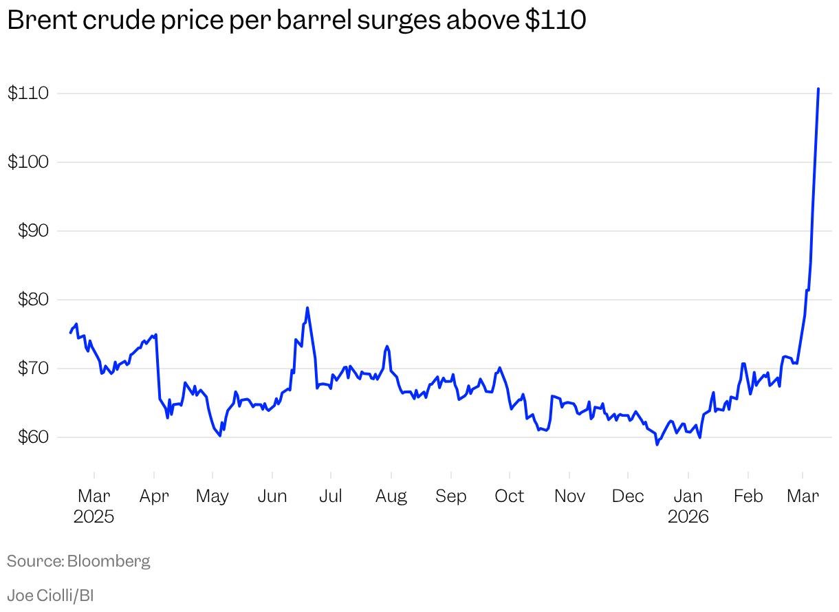 Oil prices surged above $100 per barrel as the war disrupted shipping routes and raised fears about the security of the Strait of Hormuz, one of the most important oil chokepoints in the world.