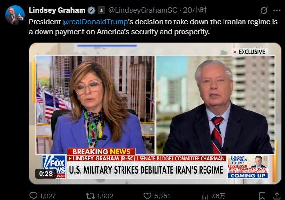 He framed the war not only as a security issue but as a strategic investment. Graham also linked Iran’s oil reserves to the broader competition with China, arguing that a new Middle East aligned with Washington would reshape the global energy balance.