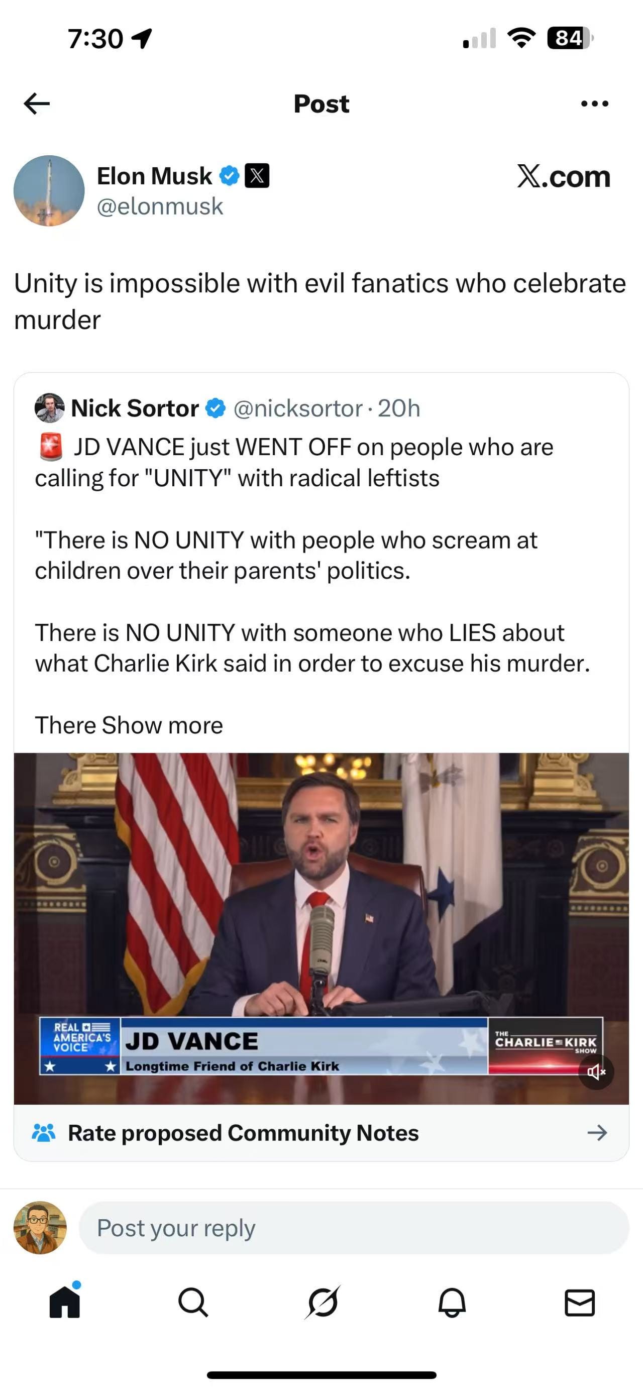 JD Vance posted a video after Charlie Kirk’s assassination. He framed the whole debate around domestic terrorism. He hinted that unless the so-called “extreme left” is destroyed, there can be no unity. Elon Musk immediately echoed him, declaring unity impossible with “evil fanatics.”