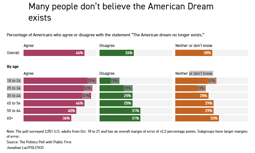 46 percent of Americans say the American Dream doesn’t exist anymore.
